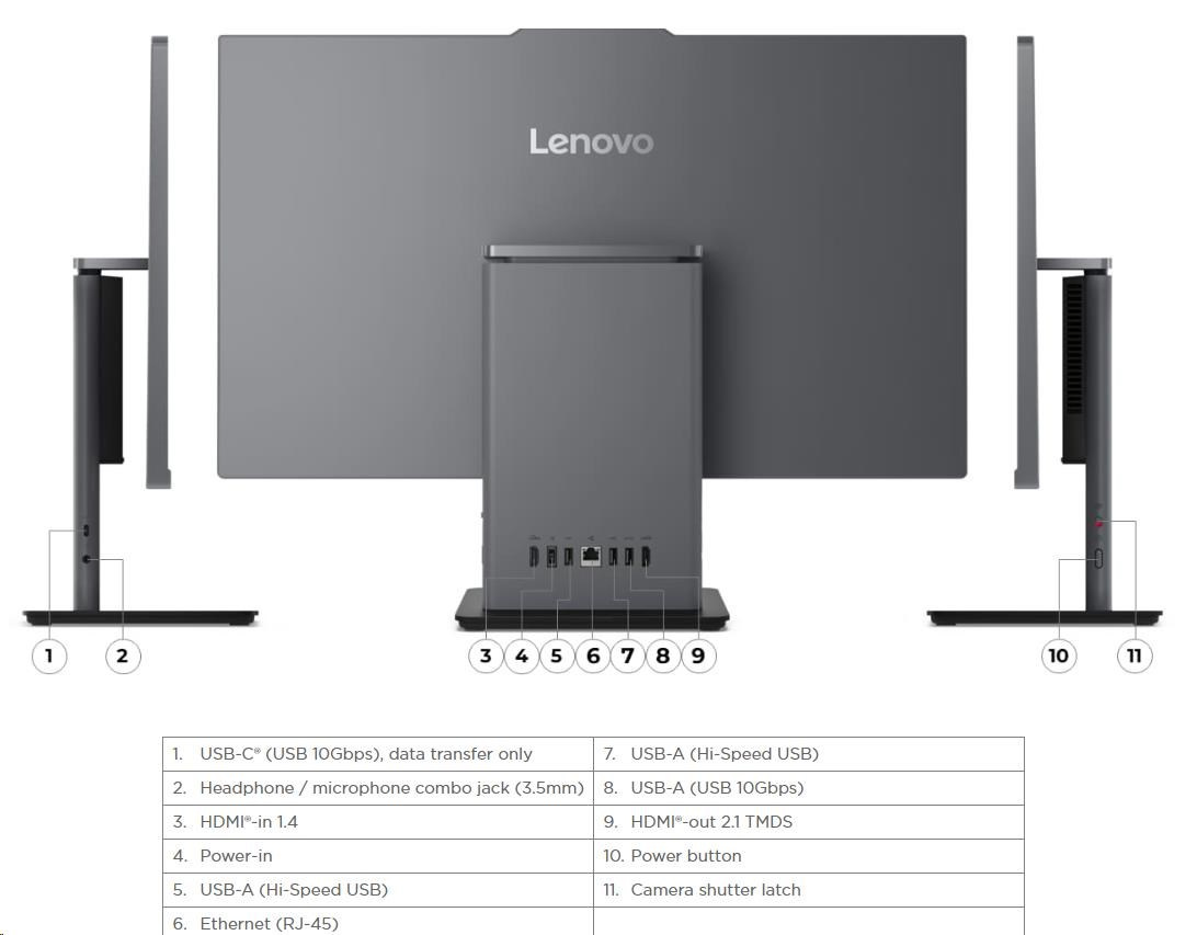 | Standartné porty | 1x USB-A (USB 10Gbps / USB 3.2 Gen 2) 2x USB-A (Hi-Speed USB / USB 2.0) 1x HDMI®-in 1.4 1x HDMI®-out 2.1 TMDS 1x Ethernet (RJ-45) 1x power connector |