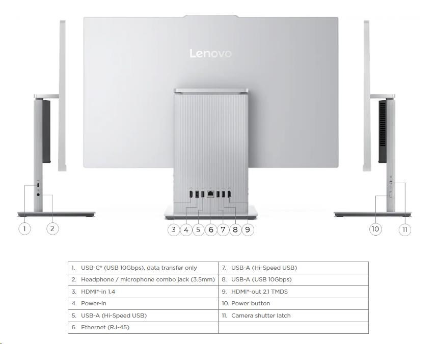| Standartné porty | 1x USB-A (USB 10Gbps / USB 3.2 Gen 2) 2x USB-A (Hi-Speed USB / USB 2.0) 1x HDMI®-in 1.4 1x HDMI®-out 2.1 TMDS 1x Ethernet (RJ-45) 1x power connector |