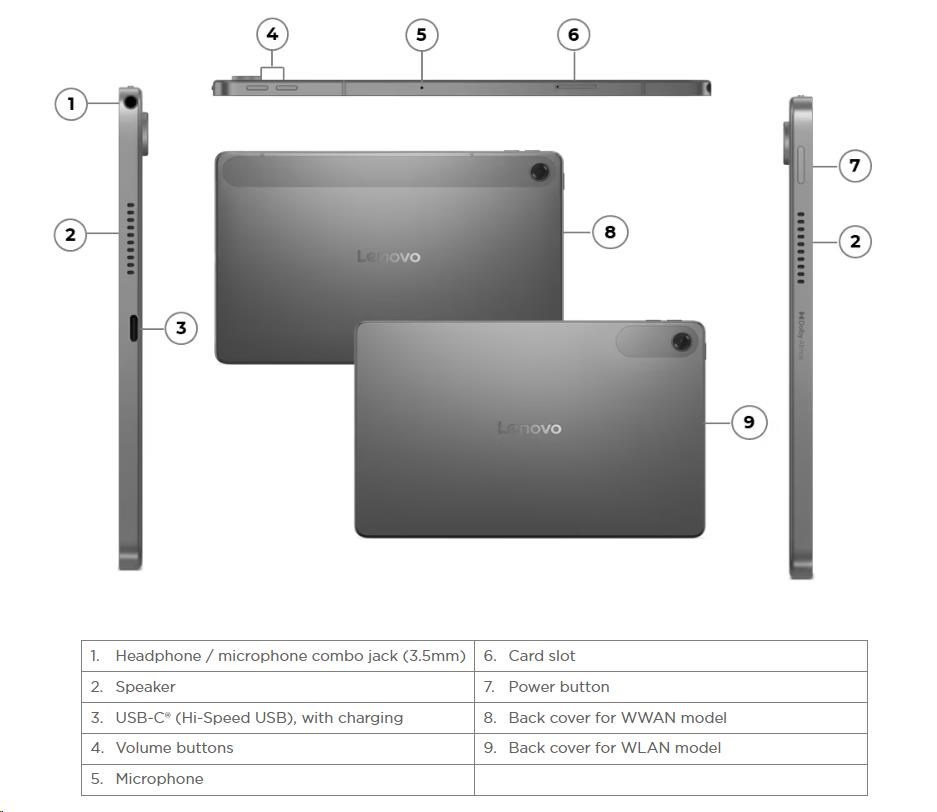 Standartné porty | Standard Ports 1x USB-C® (Hi-Speed USB / USB 2.0), with charging, digital audio 1x Headphone / microphone combo jack (3.5mm) 1x Card slo |