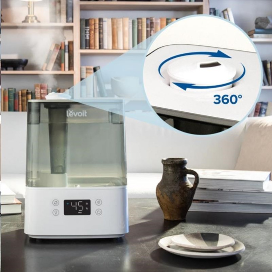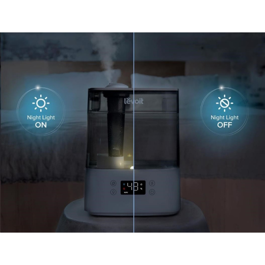 Zvlhčovač vzduchu Levoit Classic300S Smart je možné ovládať priamo na prehľadnom podsvietenom LED displeji alebo aj cez aplikáciu na chytrých zariadeniach Apple alebo Android. Alebo si ho môžete dokonca pripojiť do svojho Smart Home a ovládať hlasom cez Google Assistant alebo Amazon Alexa. Senzor vlhkosti zobrazuje vlhkosť v reálnom čase av automatickom režime tak okamžite reaguje na zmeny vlhkosti. Vždy by sa malo jednať o rozmedzie medzi 40 % až 60 %. Cez aplikáciu si môžete informácie kontrolovať alebo si svoje režimy plánovať.