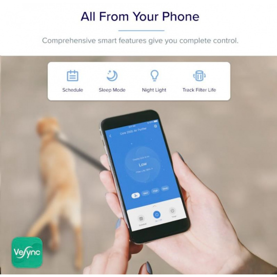Šikovnú čističku vzduchu Levoit 300S Smart môžete ovládať priamo na displeji alebo aj cez aplikáciu určenú pre smartphony a tabely Android a Apple. V aplikácii si môžete nastaviť rôzne režimy, výkon, sledovať proces čistenia, úroveň znečistenia vzduchu alebo kondíciu, v akej sa filter nachádza.