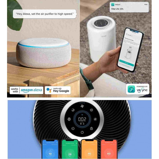 Šikovnú čističku vzduchu Levoit 300S Smart môžete ovládať priamo na displeji alebo aj cez aplikáciu určenú pre smartphony a tablety Android a Apple. V aplikácii si môžete nastaviť rôzne režimy, výkon, sledovať proces čistenia, úroveň znečistenia vzduchu alebo kondíciu, v akej sa filter nachádza.