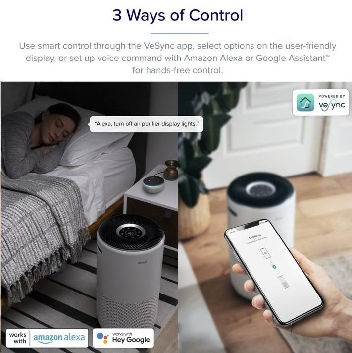 Šikovnú čističku vzduchu Levoit Core 400S Smart môžete ovládať priamo na displeji alebo aj cez aplikáciu určenú pre smartphony a tablety Android a Apple. V aplikácii si môžete nastaviť rôzne režimy, výkon, sledovať proces čistenia, úroveň znečistenia vzduchu alebo stav, v akom sa filter nachádza.