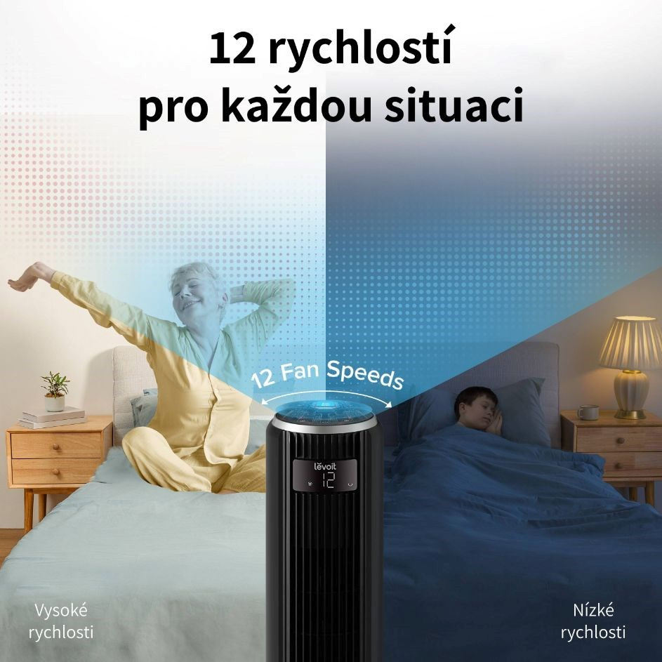 Ventilátor Levoit 362 je navrhnutý ako komplexné riešenie na chladenie vášho domova bez nákladov a spotreby energie špecializovanej klimatizácie. Ventilátor má 12 rýchlostí a jeho bezkartáčový motor zabezpečuje veľmi tichú prevádzku. Rozsah hlučnosti sa pohybuje od takmer nepočuteľných 25 dB až po trvalo nízkych 48 dB pri maximálnom výkone. Ventilátor má automatickú osciláciu v rozsahu 90° a smer prúdenia vzduchu možno nastaviť manuálne vo vertikálnom smere. Ovládanie ventilátora je jednoduché a intuitívne a k dispozícii je diaľkový ovládač, ktorý možno bezpečne uložiť do tela ventilátora, keď sa nepoužíva, aby sa predišlo jeho strate. Špeciálne navrhnutý rotor ventilátora ponúkne veľmi silný prúd vzduchu s rýchlosťou 7,9 m/s a dosahom prúdu až 7 metrov pri príkone len 26 W.