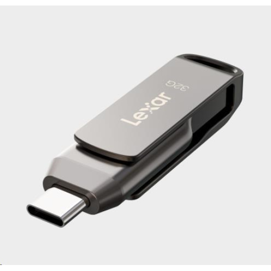 Lexar JumpDrive Dual Drive D400 USB 3.1 Type-C je flash disk 2 v 1, ktorý umožňuje bezproblémový prenos obsahu medzi zariadeniami USB Type-C a Type-A. Tento disk je vybavený štýlovým kovovým krytom a otočným systémom pre väčšiu ochranu a je rovnako odolný ako rýchly s prenosovou rýchlosťou až 130 MB/s.