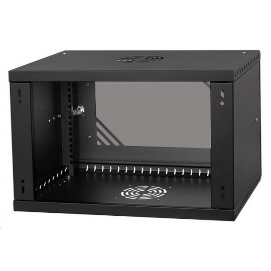 LEXI-Net 19" nástěnný rozvaděč Basic 6U 520x450, skleněné dveře, bez zad, rozložený, černý