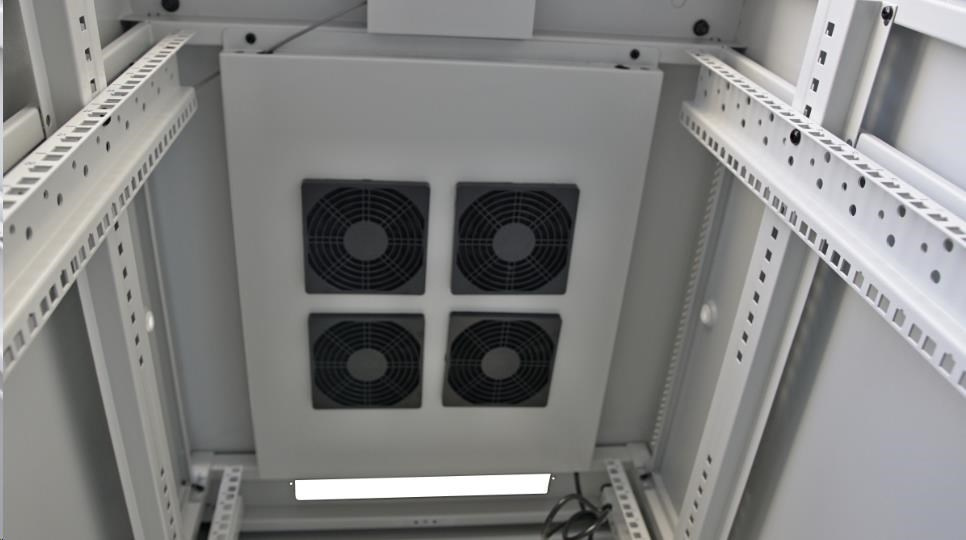 LEXI-Net 19" stojanový rozvaděč 27U 600x800 rozebiratelný, ventilační jednotka, termostat, kolečka, 600kg, sklo, šedý