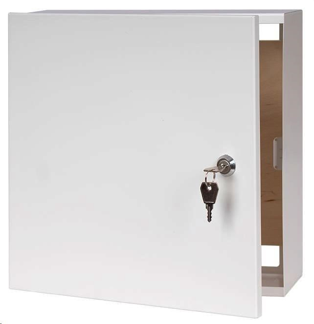 Lexi-Net Basic univerzálna skrinka 300 x 300 x 100 mm, biela Univerzálna uzamykateľná skrinka, povrchová montáž rozmer 300x300x100mm materiál oceľ 0,8mm s práškovou farbou - biela Montážna doska - preglejka 290 x 230 x 8mm Rozmer balenia 305x310x105 hmotnosť netto / s obalom 1,6kg / 1,72kg Krytie IP20..