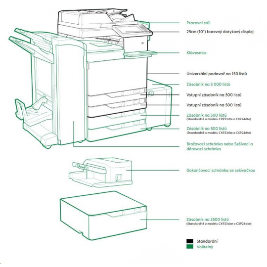 Farebná tlačiareň LEXMARK CX924dxe, A3, 65 str./min,2048 MB, farebný LCD displej, DADF, USB 2.0, LAN