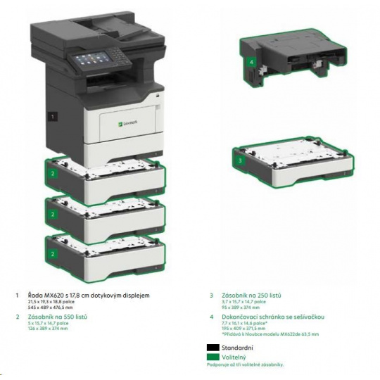 LEXMARK Multifunkčná čiernobiela tlačiareň MX622adhe, A4, 47 str./min, 2048MB, farebný LCD displej, duplex, DADF, USB 2.0, LAN,