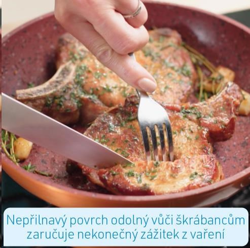 Vďaka neprilnavému povlaku odolnému proti poškriabaniu je zaručený skvelý zážitok z varenia, bez pripálenia čohokoľvek. Šťavnaté steaky, jemné ryby a chrumkavá zelenina môžete pripravovať takmer bez tuku a oleja. Pevné hliníkové jadro vašej Livington Copper & Stone Pan zabezpečuje extrémne rýchle a rovnomerné zohrievanie panvice s nízkou hmotnosťou.