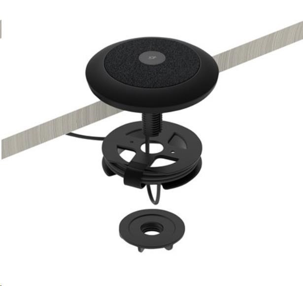 Prebytočnú kabeláž naviňte na káblový bubon, aby ste dosiahli úhľadný vzhľad konferenčného stola nielen pri pohľade zhora, ale aj zdola. Pripevnite káblový bubon priamo na stolový držiak mikrofónu alebo iný povrch pomocou priloženého montážneho materiálu.