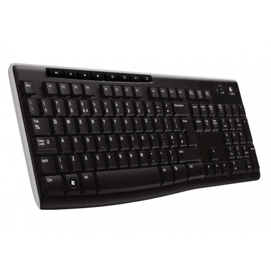 Bezdrôtová klávesnica Logitech® K270. Spoľahlivé bezdrôtové pripojenie - kdekoľvek používate klávesnicu. Malý prijímač Logitech Unifying je dostatočne malý na to, aby ste ho mohli umiestniť do notebooku. Navyše môžete ľahko pridať ďalšiu kompatibilnú myš alebo klávesnicu - bez problémov s viacerými prijímačmi USB. So zariadením Logitech Advanced 2.vďaka bezdrôtovému pripojeniu s frekvenciou 4 GHz si užijete prakticky žiadnu stratu signálu až do vzdialenosti 10 metrov.* Bez problémov s batériou vydržíte dva roky.** Osem klávesových skratiek a nastavenie plug-and-play, ktoré trvá len niekoľko sekúnd, prispievajú k jednoduchosti. Známe rozloženie v plnej veľkosti - vrátane číselného bloku - vám poskytuje všetky správne tlačidlá presne tam, kde ich očakávate. Je skonštruovaná tak, aby vydržala vysokú kvalitu a spoľahlivosť, ktorými je spoločnosť Logitech známa, s konštrukciou odolnou proti poliatiu*** a klávesmi s UV povlakom, ktorý zaručuje dlhú životnosť.