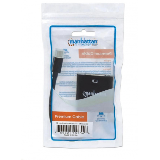 MANHATTAN Adaptér mini DP na DVI-I, aktívny, čierny