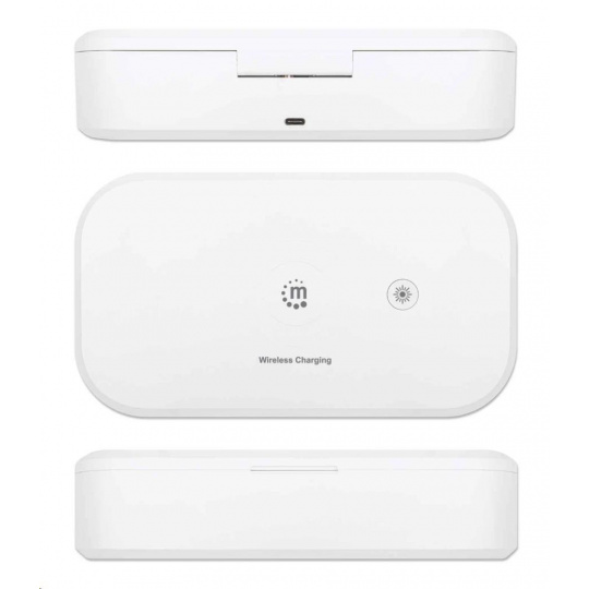 MANHATTAN UV-C dezinfekčné puzdro s bezdrôtovým nabíjaním, 10W bezdrôtová nabíjacia podložka, biela