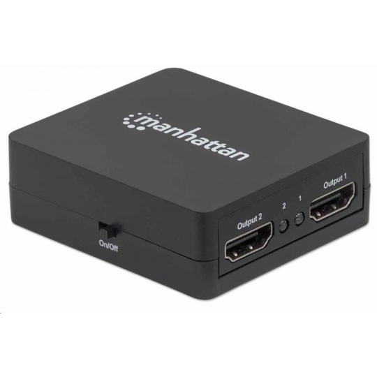 Jednoducho distribuujte jeden signál HDMI na viacero displejov.Manhattan 1080p 2-portový rozdeľovač HDMI posiela signály HDMI z jedného prehrávača Blu-ray, satelitného prijímača, digitálneho rekordéra, set-top boxu, hernej konzoly alebo iného zdroja HDMI na dva displeje HDMI. Flexibilné riešenie pre mnohé A/V aplikácieRozdeľovač HDMI Manhattan 1080p s 2 portami je ideálny na výstavy, do učební, na videokonferencie, prezentácie a maloobchodné aplikácie a je vybavený zabudovaným zosilňovačom na zvýšenie sily signálu. Je tiež dobrou voľbou na rozdelenie a distribúciu synchrónneho signálu na viacero displejov HDMI, keď je zdrojové zariadenie vzdialene uložené v zabezpečenej miestnosti alebo skrini. Používatelia môžu kaskádovať viacero jednotiek až do troch úrovní a vysielať obraz/zvuk HDMI na ďalšie displeje v široko distribuovaných aplikáciách.Kvalitná konštrukcia a jednoduchá inštaláciaPlná kompatibilita s HDMI, HDCP 1.0, 1.1 a 1.2, ako aj DVI 1.0 zaručuje, že 2-portový rozdeľovač HDMI Manhattan 1080p môže poskytovať dlhý servis a spoľahlivý výkon. Rýchlo pripojte káble HDMI (nie sú súčasťou balenia) a napájací kábel USB a toto cenovo dostupné riešenie HDMI je kompletné - nie sú potrebné žiadne zložité nastavenia ani konfigurácie softvéru alebo hardvéru.