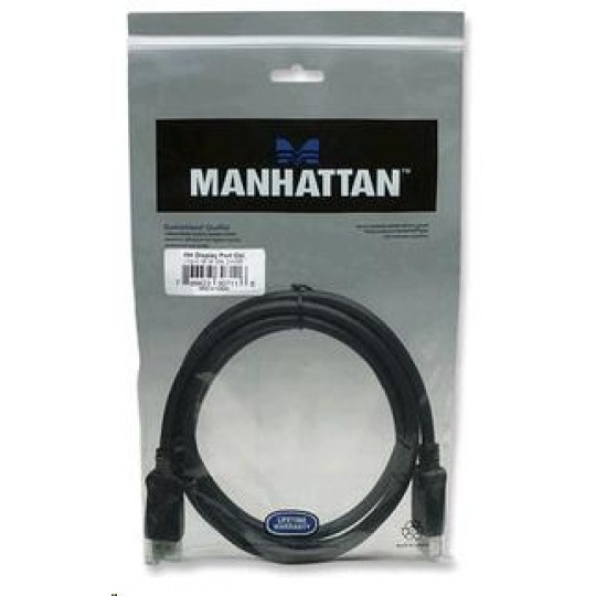 Výkon vo vysokom rozlíšení pre osobné počítače Káble MANHATTAN DisplayPort predstavujú jednokabelové riešenie, ktoré prenáša digitálne zvukové aj obrazové signály vo vysokom rozlíšení medzi stolnými počítačmi a notebookmi a výstupným zariadením. S 10.20-pinový konektor so šírkou pásma 8 Gb/s (1080 Mb/s), funkciou DeepColor a 24-bitovým 8-kanálovým nekomprimovaným zvukom je malý, kompaktný a ideálny na použitie s počítačmi vybavenými DisplayPortom, plochými displejmi, zariadeniami s tenkým profilom a mnohými zariadeniami spotrebnej elektroniky vrátane prehrávačov Blu-ray a herných konzol. Úplné fóliové a opletené tienenie, tvarované topánky s odľahčením od pnutia, ochranné PVC plášte a pozlátené prípojky pomáhajú káblom MANHATTAN DisplayPort poskytovať maximálnu vodivosť a čistý, jasný prenos signálu so zníženým rušením a skreslením EMI. -DisplayPort 20-pinový samec na DisplayPort 20-pinový samec so západkovým pripojením -Prenáša digitálne audio/vizuálne signály s vysokou šírkou pásma z PC na displej a iné zariadenia s podporou DisplayPort - až do rozlíšenia 1080p -Podporuje prechod signálu HDMI a DVI -Úplne tienený na zníženie EMI a iných zdrojov rušenia -Plug and Play pre aplikácie typu box-to-box -Tvarovaný PVC kryt -Životná záruka -Spĺňa alebo prevyšuje existujúci DisplayPort 1.1 normy - Podporuje 10.prenosová rýchlosť 8 Gb/s, rozlíšenie 2560 × 1600 (WQXGA) a HDCP -(2) 20-pinový samec DisplayPort so západkami -Tienenie: hliník a mylarové opletenie -28 AWG Obsah balenia -Kábel DisplayPort pre monitor..