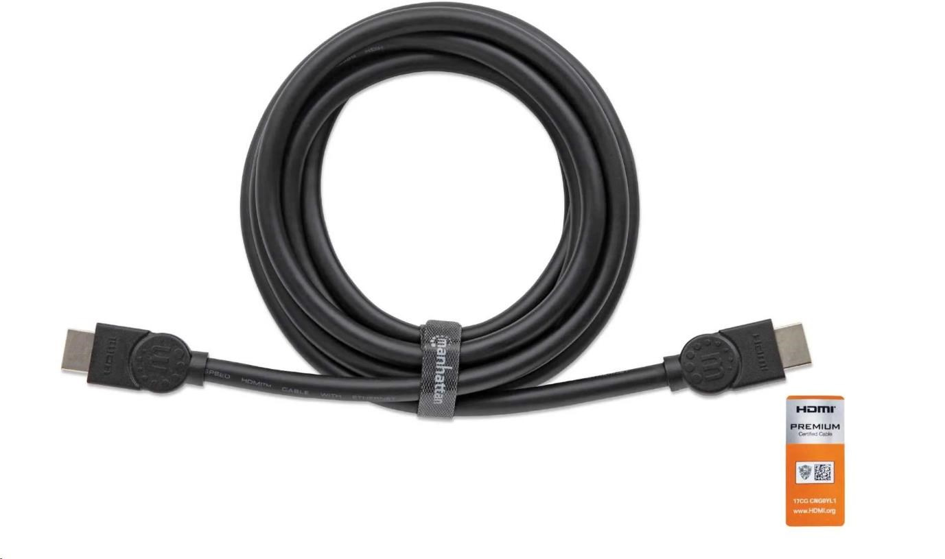 MANHATTAN Vysokorýchlostný kábel HDMI + Ethernet Premium, 5 m, čierny