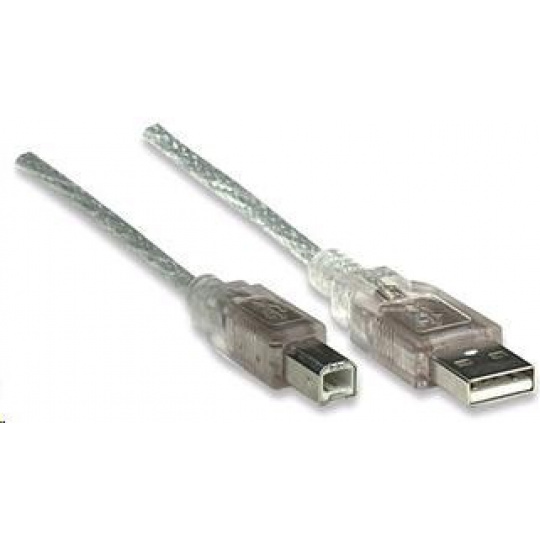 MANHATTAN USB kábel 2.0 Kábel A-B 3 m (strieborný)
