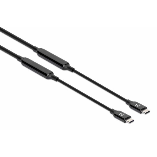 MANHATTAN Kabel USB-C Male to Male, USB 3.2 Gen 2 Type-C Active Device Cable, 5m, pozlacené koncovky, černá