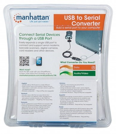 väčšina moderných počítačov a prenosných počítačov nemá porty RS232 (DB9), čo takmer znemožňuje používanie starších periférnych zariadení a high-tech zariadení, ktoré sa pripájajú pomocou portov COM. Prevodník Manhattan USB na sériový port â" so sériovým portom RS232 (DB9) a čipovou sadou Prolific PL-2303RA â" ľahko rozšíri jeden port USB na pripojenie a podporu sériových modemov, snímačov čiarových kódov, digitálnych fotoaparátov, čítačiek kariet, rádií Ham/Amateur, GPS, CNC strojov, teleskopov, vyšívacích strojov, regulátorov vstrekovania paliva, PDU, sieťových prepínačov a ďalších zariadení.