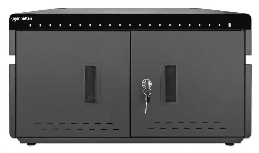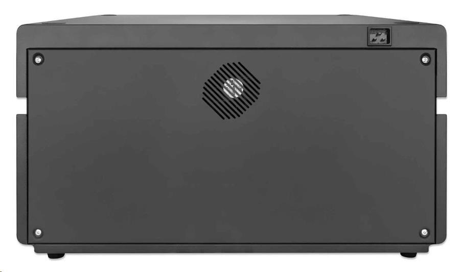 Stolná nabíjacia skrinka MANHATTAN - 20 portov, 360 W, prepäťová ochrana, tiché vetranie, kovový kryt, čierna