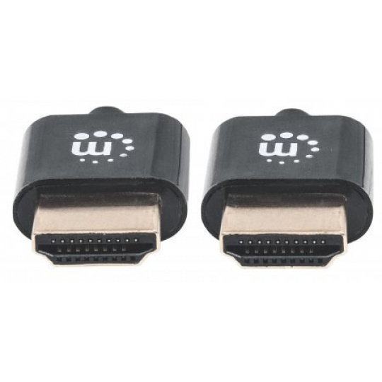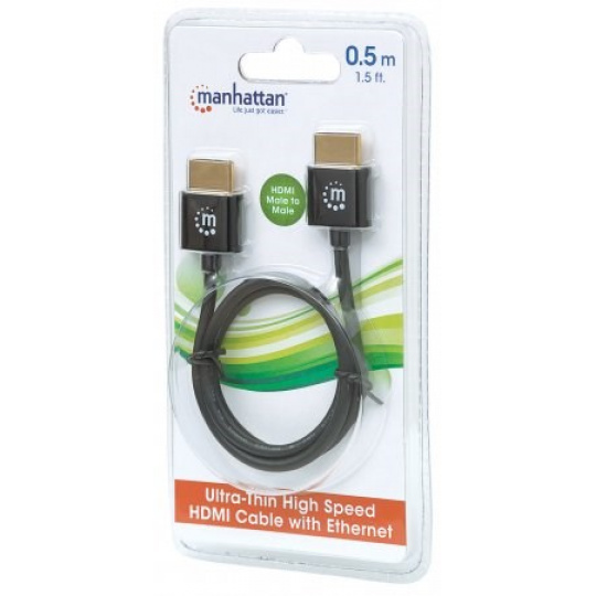 MANHATTAN Ultratenký vysokorýchlostný kábel HDMI s Ethernetom, HEC, ARC, 3D, 4K, HDMI samec - samec, tienený, čierny, 0,5 m