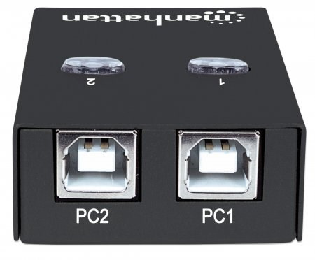 manhattan Hi-Speed USB 2.0 Automatický prepínač zdieľania ľahko umožňuje dvom počítačom zdieľať zariadenie USB. Je ideálny na domáce a kancelárske použitie, keď používatelia potrebujú zdieľať káblový modem USB, tlačiareň, digitálny fotoaparát, skener, externý úložný disk alebo iné periférne zariadenie. Použite pohodlné prepínanie prístupu na požiadanie na aktiváciu jediným kliknutím na tlačidlo na obrazovke alebo použite prepínače na palube na manuálny výber aktívneho počítača.