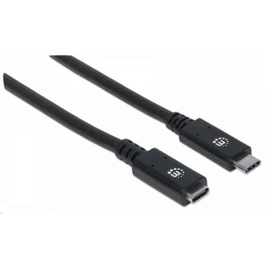 Kábel Manhattan USB-C, USB 3.1 Gen 2, USB-C samec na USB-C samica, 10 Gb/s, 5 A, 50 cm, čierna