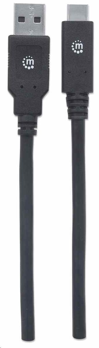 Kábel USB Manhattan, USB 3.2 Gen 1, USB-A samec na USB-C samec, 5 Gb/s, 2 m, čierna