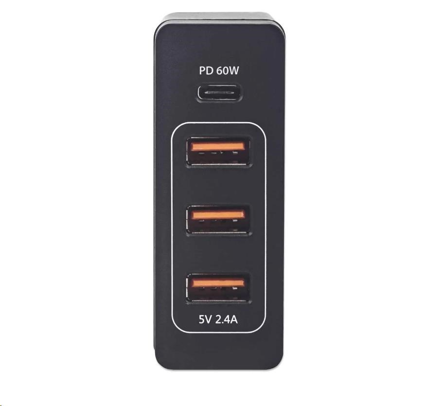 Nabíjacia stanica MANHATTAN USB Power Delivery - 72 W, čierna