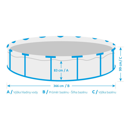 Uvedené rozmery bazéna sú iba orientačné a ovplyvniť ich môže rovnosť podkladu či objem napustenej vody. Povolená výrobková odchýlka je 5 %.