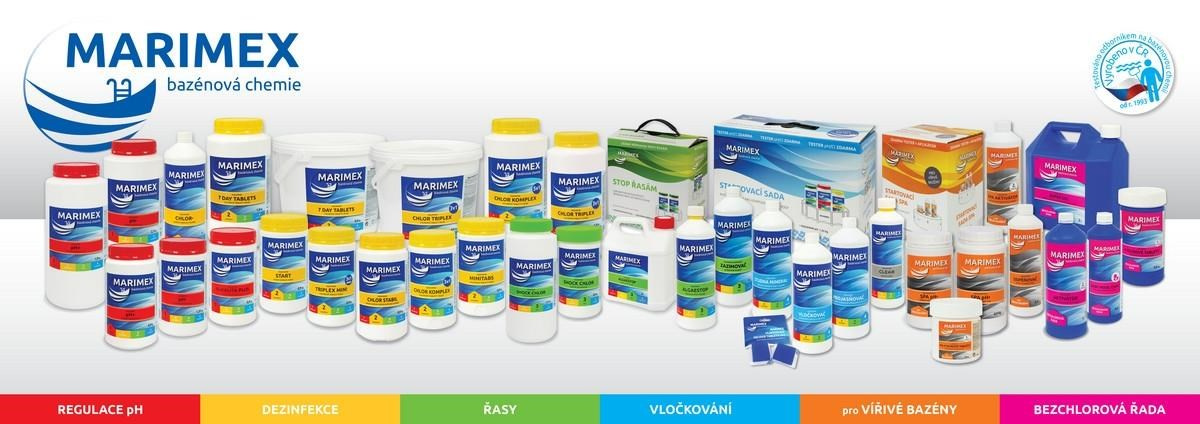 Všetky produkty bazénovej dezinfekcie Marimex sú vyvinuté, vyrábané a balené v Českej republike. Veľmi dôsledne sa kontroluje pôvod všetkých surovín a monitoruje priebeh ich spracovania.