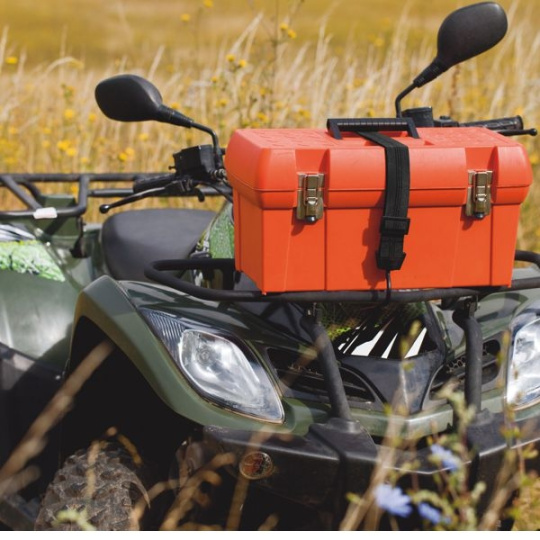 Špeciálny upínací pás s šírkou 40 mm zakončený háčikmi. Nastaviteľná dĺžka od 600~1 200 mm. Otáčacie háčiky pre ľahšie upevnenie nákladu. Maximalná nosnosť 50 kg. Háčiky kryté plastom, zabraňujúce poškodeniu nákladu.