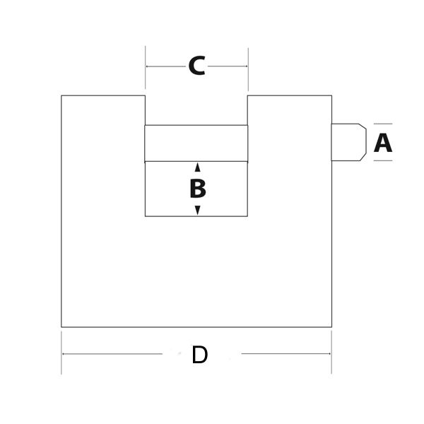 Obdĺžnikový visací zámok so šírkou 90 mm a hrúbkou 30 mm.