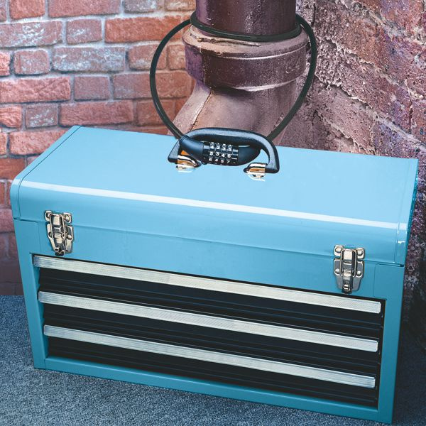 ABS plastový kryt zámku a vinylový potah lanka chrániaci proti korózii a mechanickému poškodeniu.