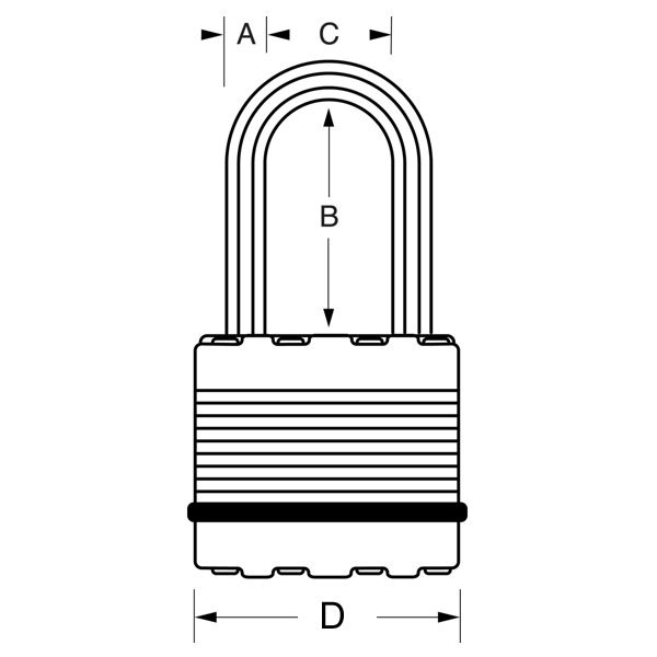 - Visací zámok šírky 50 mm s telom z vrstvenej ocele spevneným titanom pre vyššiu odolnosť a spoľahlivosť.