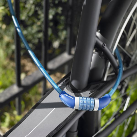 Oceľové lanko s priemerom 10 mm a dĺžkou 1 200 mm má vinylový poťah, ktorý zabraňuje poškriabaniu laku. Obsahuje integrovaný nastaviteľný 4-ciferný kombinačný zámok (10 000 možností).