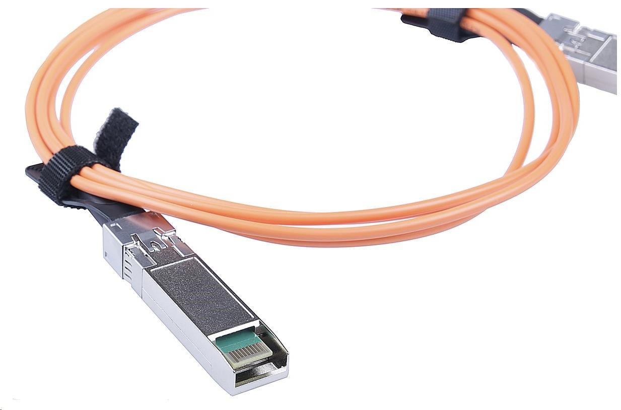 Kábel MaxLink 10G SFP+ AOC, aktívny je rýchle a lacné riešenie na jednoduché prepojenie dvoch aktívnych sieťových prvkov prepínača/routeru s rýchlosťou 1 Gb/s alebo 10 Gb/s bez potreby nákupu modulov SFP/SFP+ alebo iného príslušenstva (napr. optických prepojovacích káblov). Vysokokvalitný aktívny optický kábel AOC je vybavený univerzálnou kompatibilitou so spoločnosťou Cisco, ktorá zaručuje bezproblémové používanie s väčšinou výrobcov aktívnych komponentov. Prepojovací kábel AOC sa pripája priamo do slotu SFP/SFP+ na aktívnom prvku a okamžite vytvára pripojenie s rýchlosťou až 10 Gb/s. Pripojenie AOC sa v aktívnom prvku zobrazuje a správa ako pripojenie s klasickými modulmi SFP/SFP+. Dĺžka 10 m, aktívny dizajn...