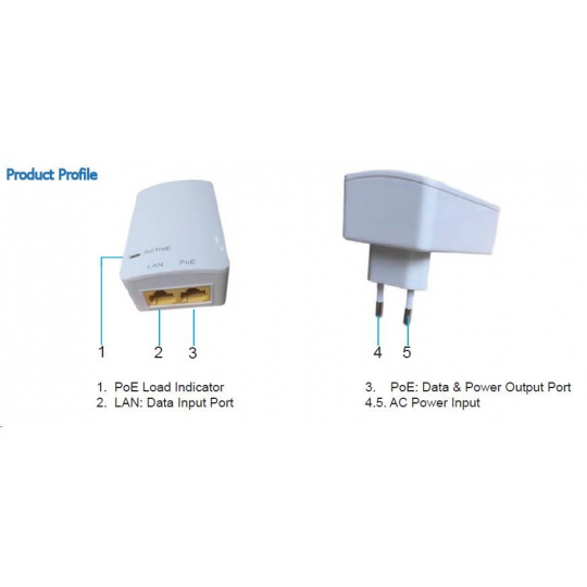 axLink PI15S je vysokokvalitný gigabitový POE injektor s jedným výstupným portom POE na napájanie 802.3af a maximálnou spotrebou energie do 15,4 W. Injektor PoE sa pripája priamo na vstup. Napájanie je vedené po vodičoch 4,5 (+) a 7,8 (-). Napájací injektor je vhodný najmä na napájanie IP kamier, telefónov VoIP atď...