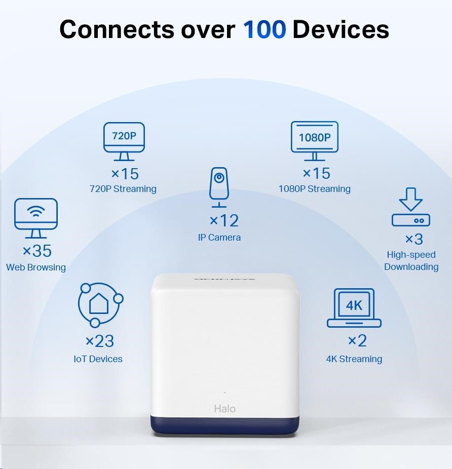 1.9 Gb/s Dual Band WiFi - Halo H50G poskytuje rýchle a stabilné pripojenie pre viac ako 100 zariadení s rýchlosťou až 1 900 Mb/s a spolupracuje s hlavnými poskytovateľmi internetových služieb (ISP) a modemami.