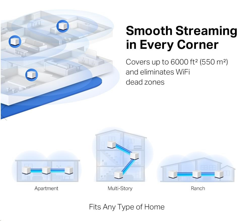 Pokrytie celej domácnosti - pokryte vysokorýchlostným WiFi až do rozlohy 550 m2, čím eliminujete mŕtve zóny WiFi vo vašej domácnosti.