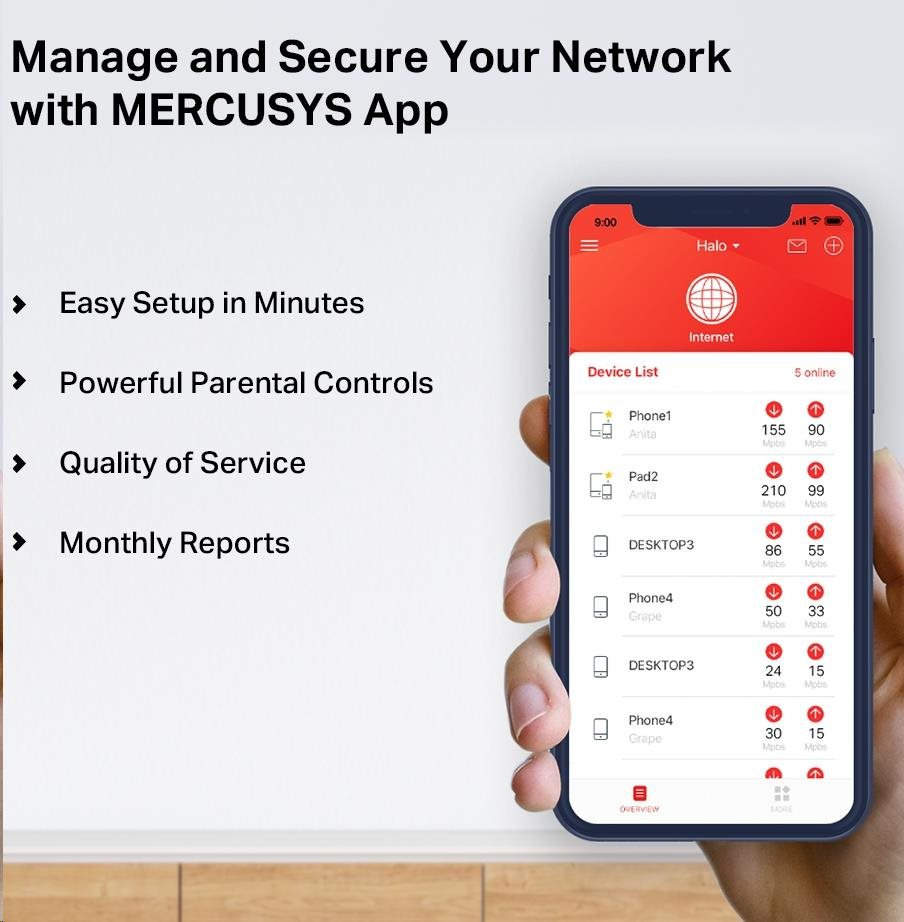 Jednoduché ovládanie pomocou aplikácie - Pomocou aplikácie MERCUSYS môžete rýchlo nastaviť a spravovať svoju WiFi.