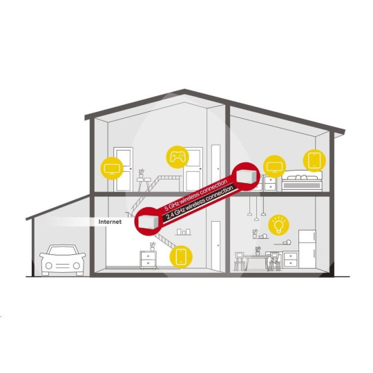 - Pokrytie celej domácnosti – pokrytie priestoru až 550 m2 (6 000 štvorcových stôp) vysokorýchlostnou sieťou Wi-Fi, ktorá eliminuje mŕtve zóny Wi-Fi pokrytia vo vašej domácnosti.