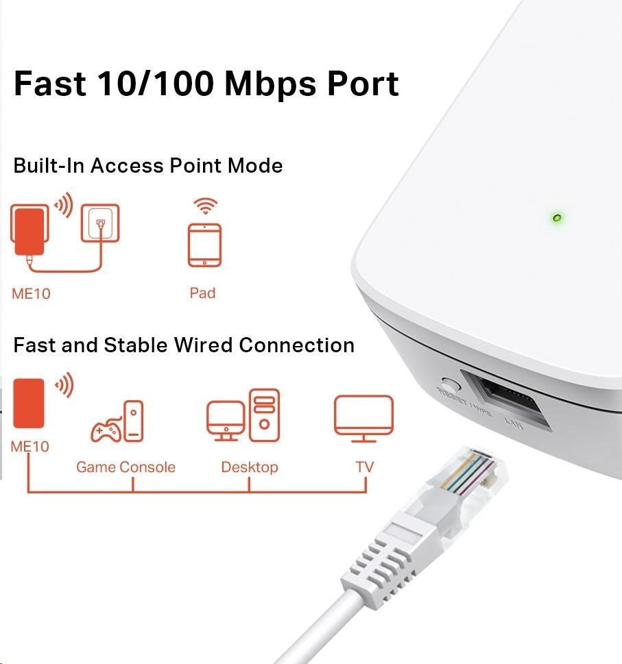 MERCUSYS ME10 WiFi4 Extender/Repeater (N300,2,4GHz,1x100Mb/s LAN)