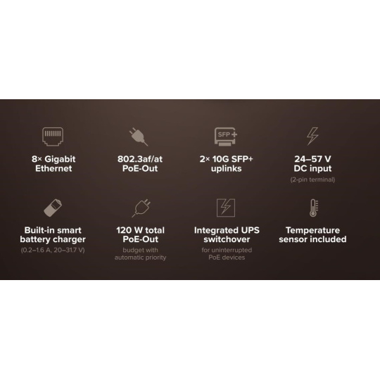 MikroTik CSS610-8P-2S+OUT Venkovní PoE switch s UPS netPower Lite 8P