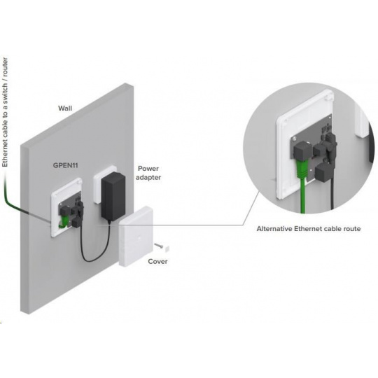 gPEN11 je nástenný injektor POE s dvoma gigabitovými ethernetovými portami, ktorý môžete použiť na napájanie zariadení určených na príjem alebo distribúciu pripojenia na mieste inštalácie. Výstupné napätie je rovnaké ako vstupné napätie a pohybuje sa v rozmedzí 12-57 V.