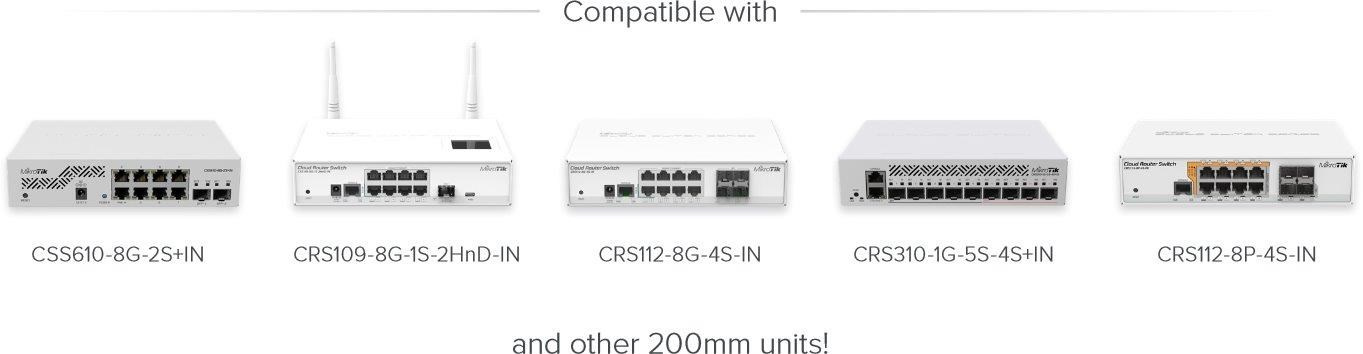 Popis produktu Rackmount kit RMK-2/10 umožňuje instalaci dvou menších zařízení MikroTik s šířkou 200mm do tradičních 19 palcových datových rozvaděčů. Případně můžete natrvalo odstranit delší část z obou držáku a nainstalovat pouze jedno MikroTik zařízení s šířkou 200mm do klasického 10 palcového racku. Seznam kompatibilních zařízení CSS610-8G-2S+IN CRS109-8G-1S-2HnD-IN CRS112-8G-4S-IN CRS310-1G-5S-4S+IN CRS112-8P-4S-IN Obsah balení (2) Držák Šroubky Technické parametry Fyzické charakteristiky Velikost:10", 19" Provedení:Rackmount Materiál:Hliník.