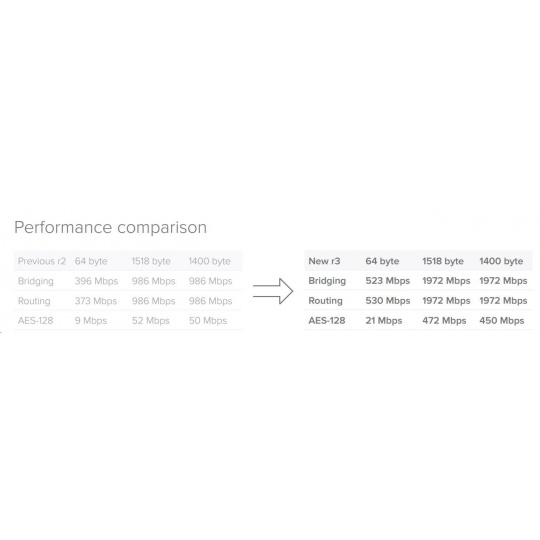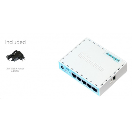 Popis produktu RouterBoard RB750Gr3 představuje plně gigabitový RouterBoard. Jedná se o vylepšenou variantu RouterBoardu RB750G. Je ideální pro vnitropodnikové či domácí sítě postavené na gigabitových prvcích. Stejně jako RB750G je dodáván včetně krytu a napájecího zdroje. Nová revize v3 má rychlejší CPU, více CPU jader, větší paměť a navíc obsahuje microSD slot a USB port. RouterBoard lze napájet pomocí klasického konektoru jack i přes PoE (k tomu je určený PORT 1, ostatní porty POE napájení nepodporují). RouterOS Mikrotik plně podporuje sítě IPv6. Technické parametry Konektory a rozhraní Možnost více WAN:Ano Slot na paměťové karty:microSD Rychlost LAN:(5) 10/100/1000Mbps Gigabit LAN:Ano USB:Ano Napájení Napájení přes PoE:6 .. 30V DC Typ napájení:DC konektor, PoE Typy PoE:PoE-In (pouze) Max. spotřeba energie [W]:5 Napájení přes konektor/svorkovnici:8 .. 30V DC Fyzické charakteristiky Provedení:Desktop Ventilátory:Bez ventilátoru Šasi:Plastové Provozní teplota [°C]:-30 až 70 Šířka [mm]:113 Výška [mm]:28 Hloubka [mm]:89 Hardware CPU:MT7621A Frekvence CPU [MHz]:880 Počet CPU jader:2 Interní uložiště [MB]:16 RAM [MB]:256 Software Operační systém:RouterOS - L4 Podpora IPv6:Ano Výchozí IP adresa:192.168.88.1 Výchozí jméno a heslo:admin / -.