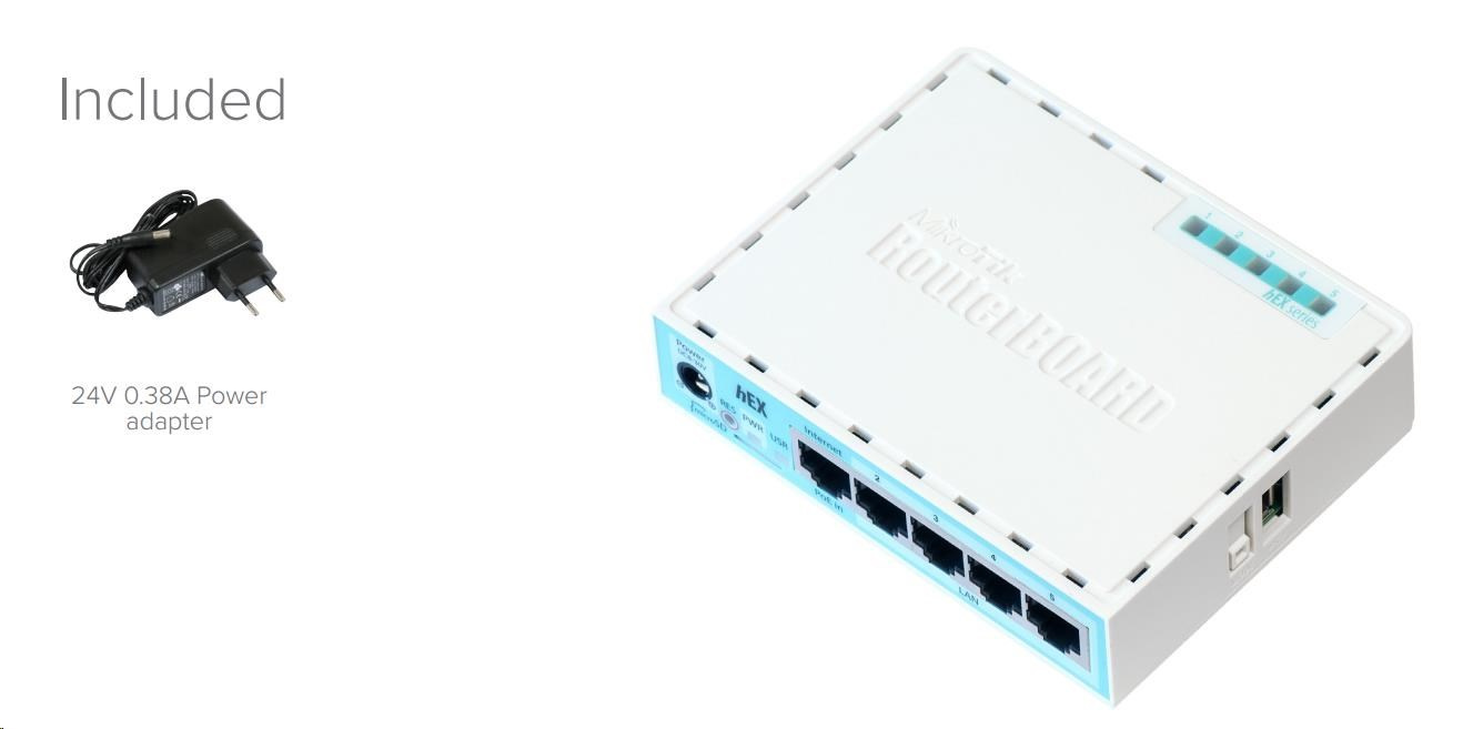 Popis produktu RouterBoard RB750Gr3 představuje plně gigabitový RouterBoard. Jedná se o vylepšenou variantu RouterBoardu RB750G. Je ideální pro vnitropodnikové či domácí sítě postavené na gigabitových prvcích. Stejně jako RB750G je dodáván včetně krytu a napájecího zdroje. Nová revize v3 má rychlejší CPU, více CPU jader, větší paměť a navíc obsahuje microSD slot a USB port. RouterBoard lze napájet pomocí klasického konektoru jack i přes PoE (k tomu je určený PORT 1, ostatní porty POE napájení nepodporují). RouterOS Mikrotik plně podporuje sítě IPv6. Technické parametry Konektory a rozhraní Možnost více WAN:Ano Slot na paměťové karty:microSD Rychlost LAN:(5) 10/100/1000Mbps Gigabit LAN:Ano USB:Ano Napájení Napájení přes PoE:6 .. 30V DC Typ napájení:DC konektor, PoE Typy PoE:PoE-In (pouze) Max. spotřeba energie [W]:5 Napájení přes konektor/svorkovnici:8 .. 30V DC Fyzické charakteristiky Provedení:Desktop Ventilátory:Bez ventilátoru Šasi:Plastové Provozní teplota [°C]:-30 až 70 Šířka [mm]:113 Výška [mm]:28 Hloubka [mm]:89 Hardware CPU:MT7621A Frekvence CPU [MHz]:880 Počet CPU jader:2 Interní uložiště [MB]:16 RAM [MB]:256 Software Operační systém:RouterOS - L4 Podpora IPv6:Ano Výchozí IP adresa:192.168.88.1 Výchozí jméno a heslo:admin / -.
